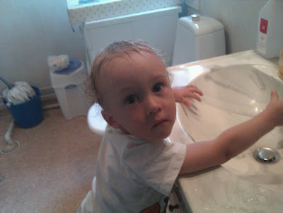 Hermans första bad hemma.